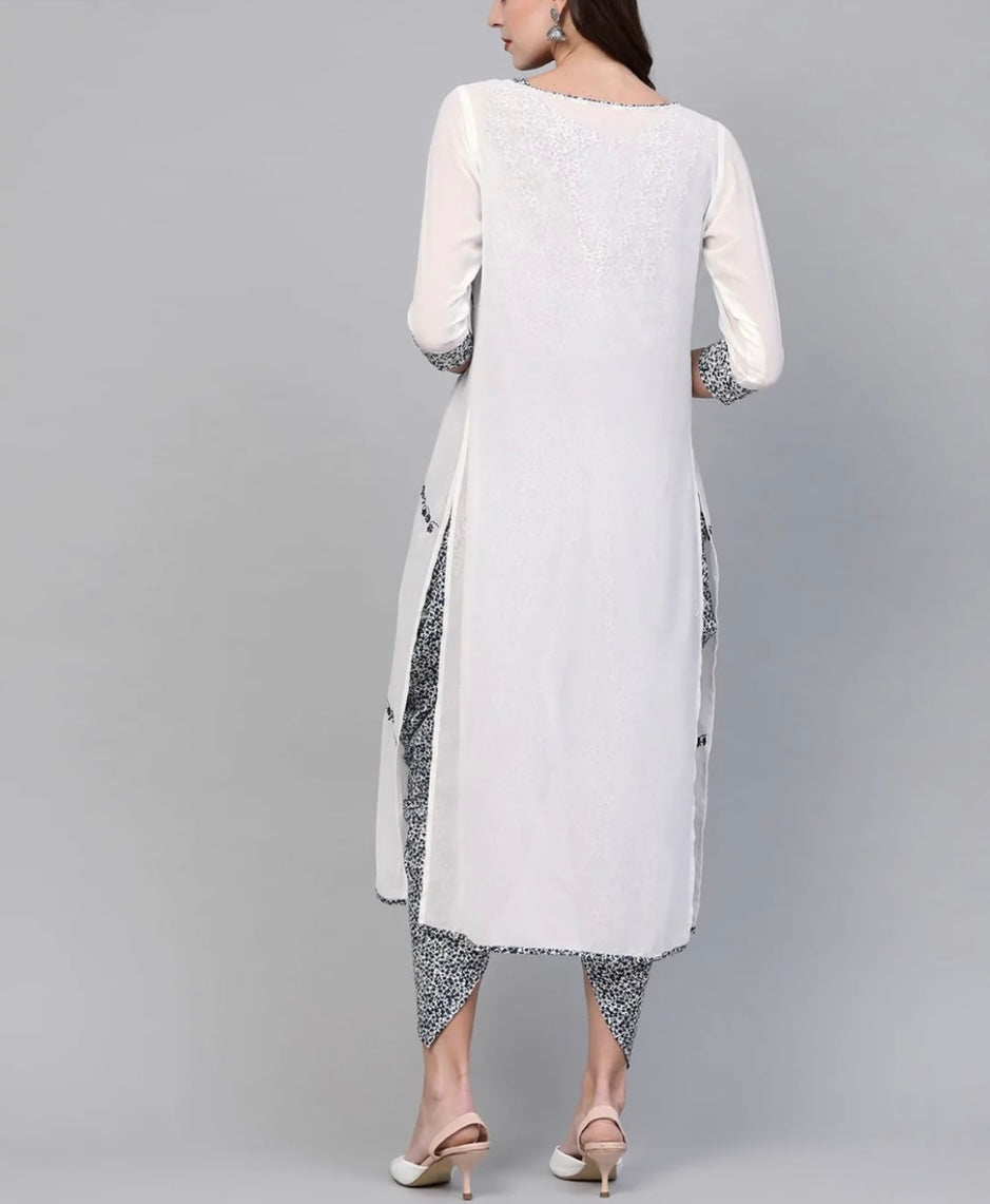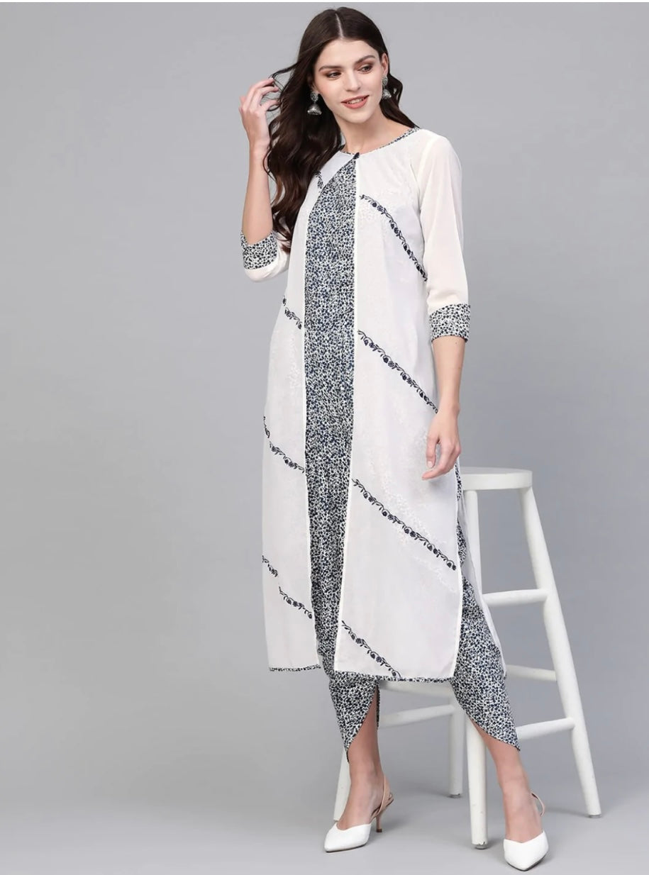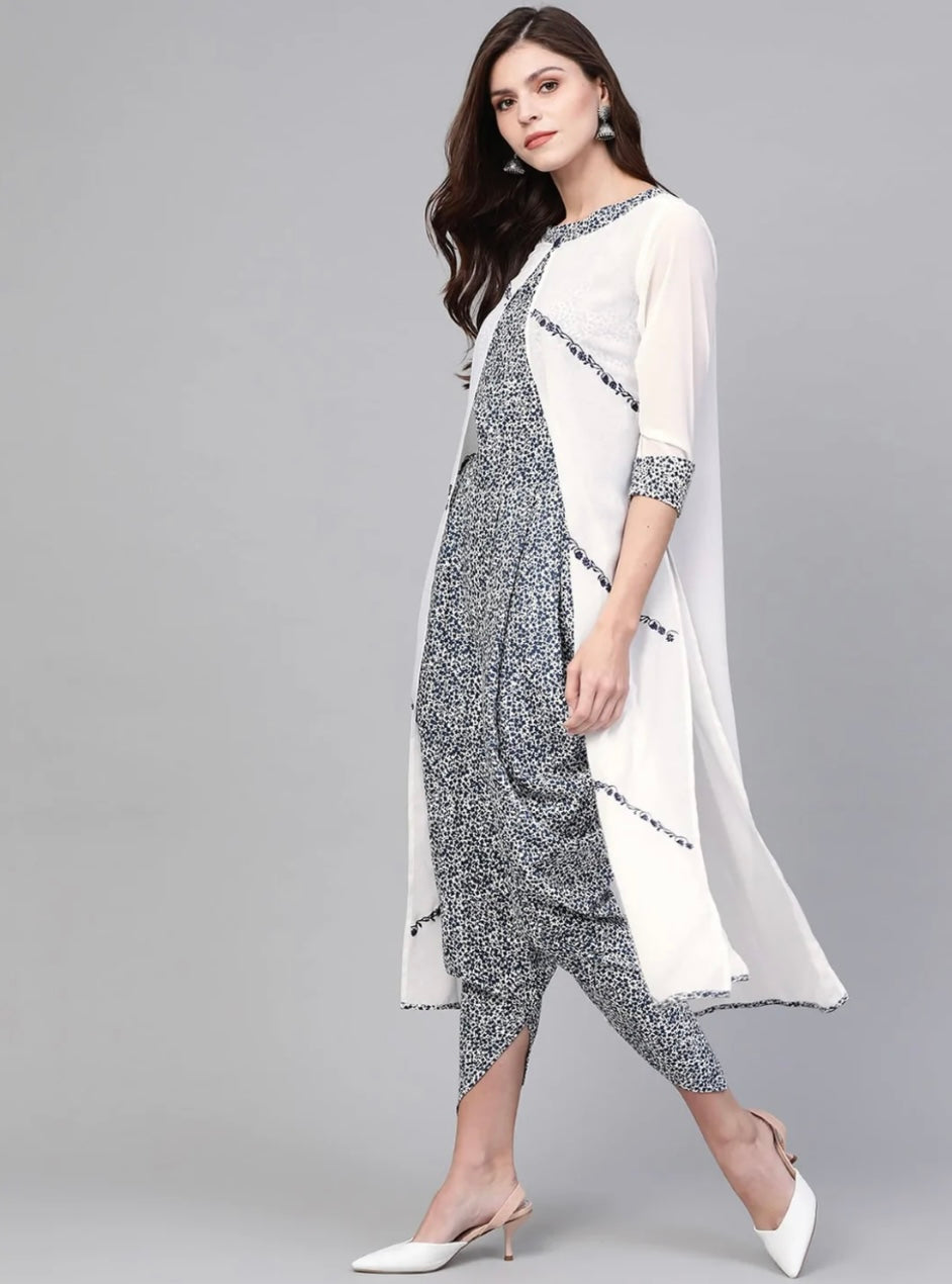 Embroidered Shrug With Printed Jumpsuit