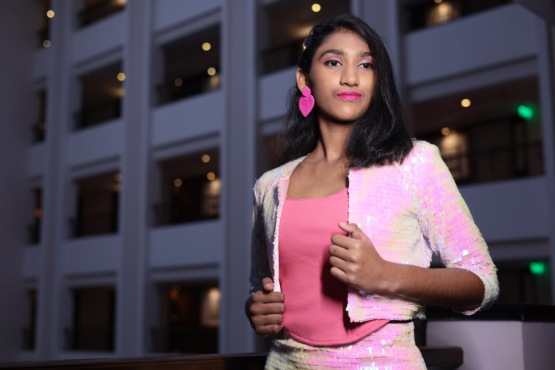 Elevate your style with this striking sequined jacket, crafted for the modern young woman. In a chic pink and white palette, this jacket is embellished with shimmering sequins that catch the light beautifully, making it ideal for everything from casual gatherings to memorable occasions. Its versatile design pairs effortlessly with various outfits, ensuring you radiate elegance and confidence. Add this captivating piece to your wardrobe and make a memorable statement wherever you go.