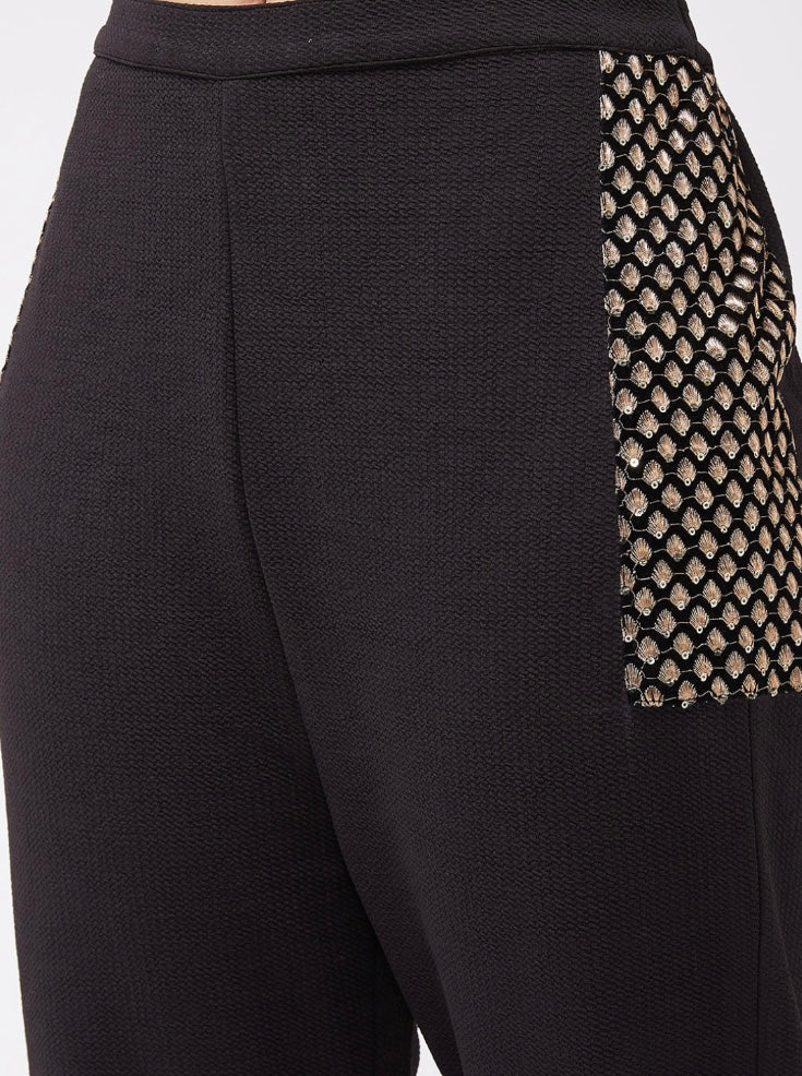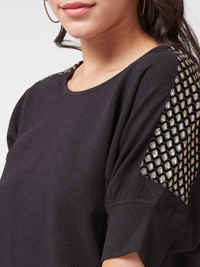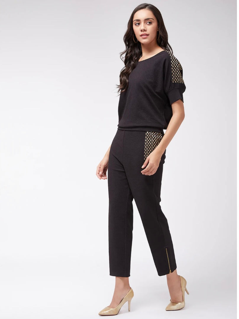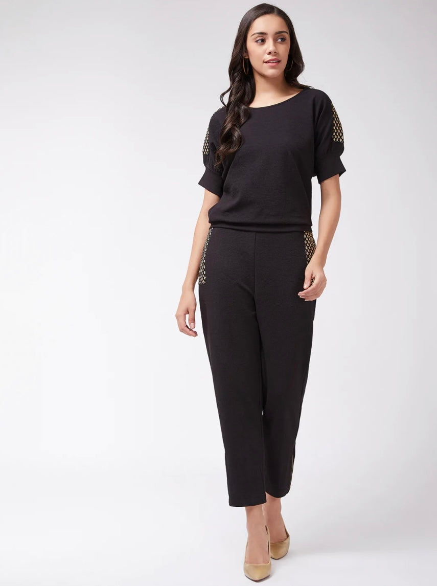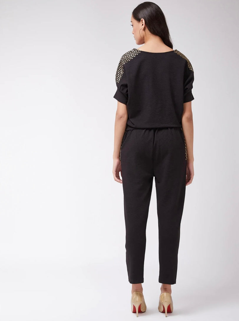 Solid Loose Top And Jogger Pants With Embellished Patch