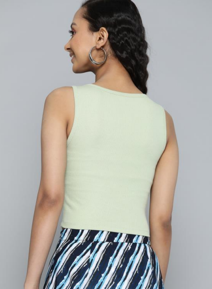 This green dress offers a perfect blend of casual style and elegance, featuring a sleeveless design that beautifully highlights the shoulders and neckline. The smooth texture enhances its comfortable fit around the waist and abdomen, ensuring a flattering silhouette. The vibrant green color brings a fresh, lively touch to the outfit, making it a versatile choice for a range of occasions, from daytime gatherings to relaxed evenings out.